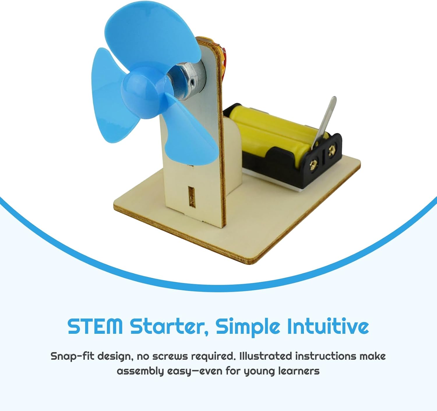 No screws, glue, or special tools are required—just connect the parts, insert batteries, and watch the fan spin. This makes it an ideal project for classrooms, after-school workshops, or at-home learning.